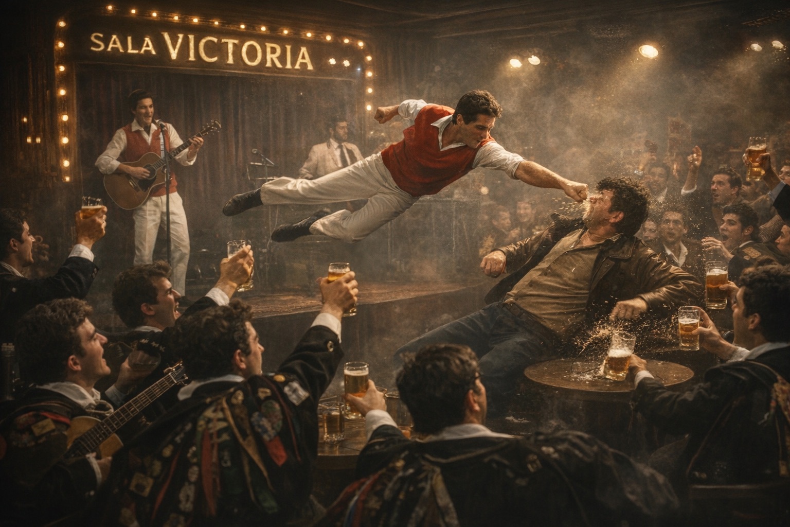 En mitad de la canción, sin aviso previo, Ramón pegó un salto desde el escenario con una elegancia atlética que ni el Ejército del Aire en día grande. Aquello no fue bajar del escenario: fue un salto limpio, felino, casi irreal. Durante un segundo, juro que la gravedad dejó de existir.