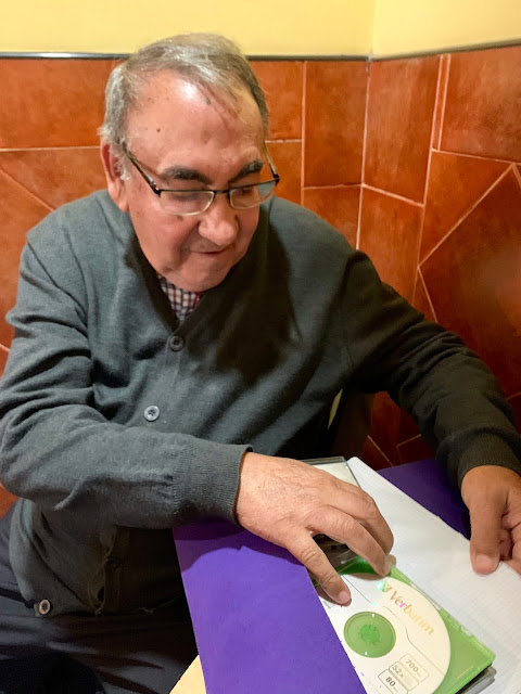 Con su lorito…como él llama a su reproductor .